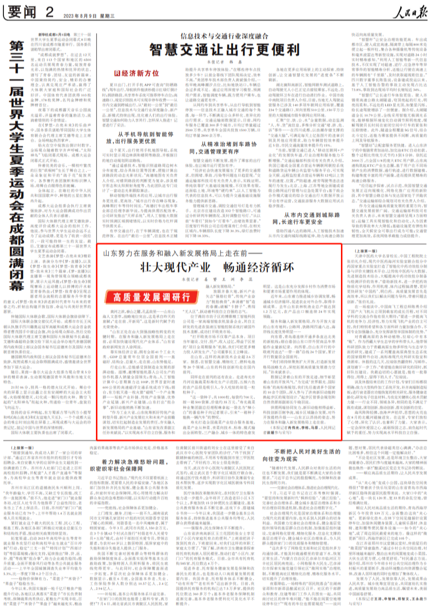 人民日?qǐng)?bào)點(diǎn)贊山東:壯大現(xiàn)代產(chǎn)業(yè) 暢通經(jīng)濟(jì)循環(huán)