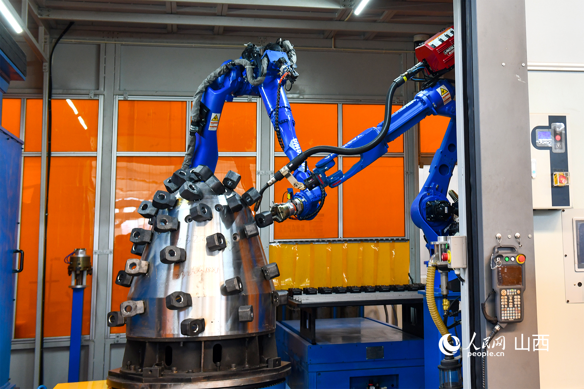 “煤海蛟龍”掘進頭智能化產(chǎn)線。人民網(wǎng)記者 焦搏文攝