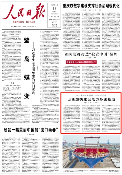 人民日報頭版 | 山西加快建設(shè)電力外送基地