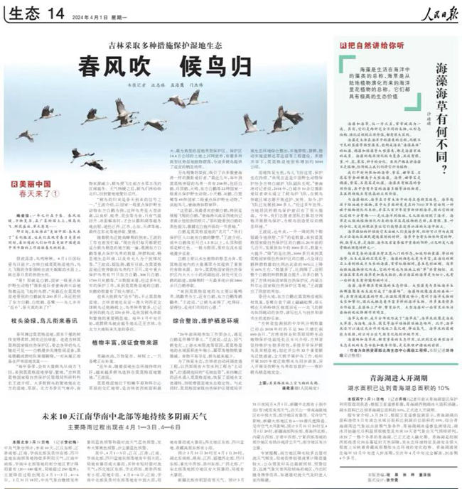 人民日報(bào)關(guān)注吉林濕地生態(tài):春風(fēng)吹 候鳥歸