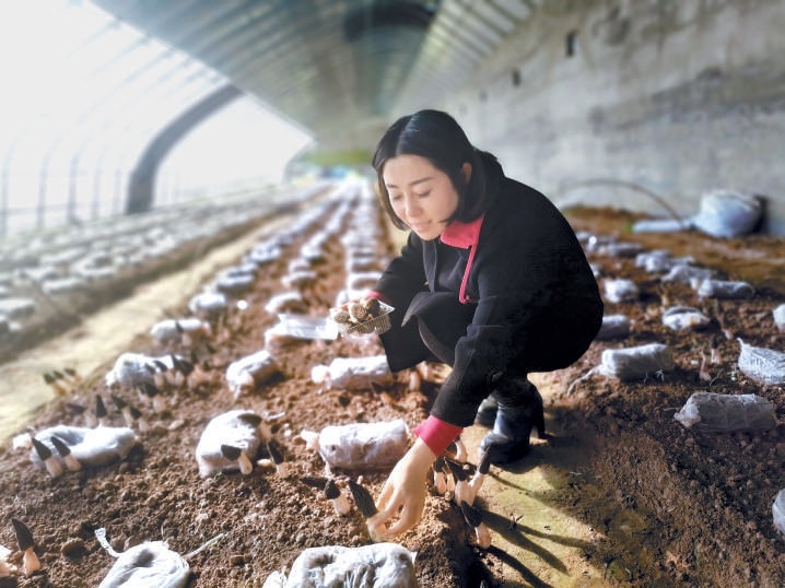 一頭利落的短發(fā),筆挺的身姿,明亮的笑容,39歲的董偉給人的第一印象有點(diǎn)颯。跟隨她來(lái)到位于懷柔區(qū)廟城鎮(zhèn)王史山村的溫室大棚,只見(jiàn)一個(gè)個(gè)小傘般的蘑菇頂蓋從土中鉆出來(lái),看上去皺皺巴巴,筆直的菌柄呈象牙白色,村民們手持特制的小彎刀,嫻熟地將蘑菇從根部割下,不一會(huì)兒就裝滿了一筐。“這是羊肚菌,一種珍稀食用菌,聞起來(lái)有一股淡淡的香味。”說(shuō)起蘑菇種植,董偉如數(shù)家珍,“羊肚菌是低溫菇,溫度一上來(lái)就不行了,收獲已經(jīng)接近尾聲?!?/p>
