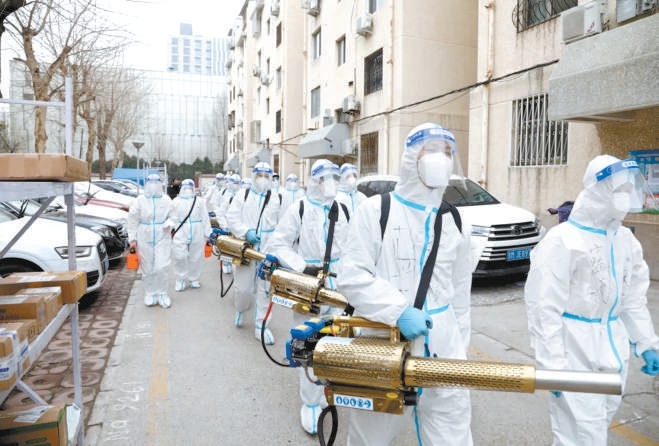 朝陽藍(lán)天救援隊(duì)22名隊(duì)員近日換上防護(hù)服,走進(jìn)六里屯甜水西園等3個(gè)社區(qū),為社區(qū)做防疫消殺,以減輕社區(qū)和物業(yè)工作人員的壓力。隊(duì)員們穿著防護(hù)服、佩戴口罩、安全帽、橡膠手套,手持70多斤重的彌霧機(jī)和藥箱,采用地毯式噴灑消毒的方式,對社區(qū)封(管)控區(qū)的道路、綠化帶等區(qū)域進(jìn)行細(xì)致消殺,確保小區(qū)內(nèi)無死角、無盲區(qū)。