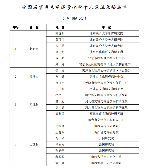 國家文物局通報(bào)表揚(yáng)全國石窟寺專項(xiàng)調(diào)查先進(jìn)單位和優(yōu)秀個(gè)人
