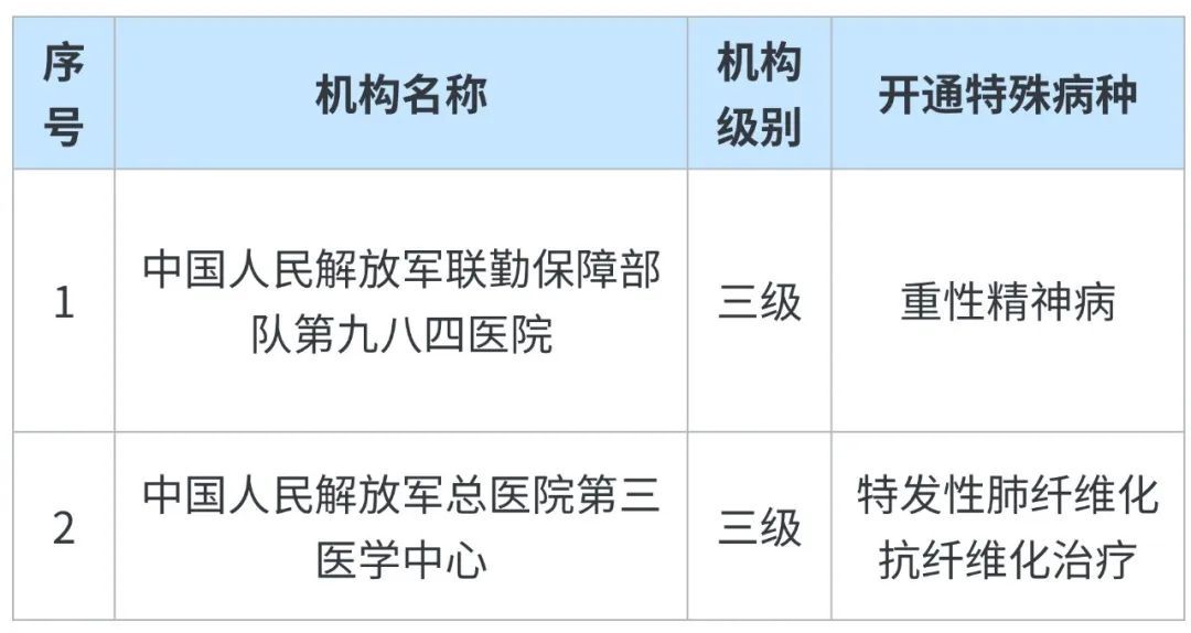 新開通特殊病種服務(wù)的定點醫(yī)療機(jī)構(gòu)