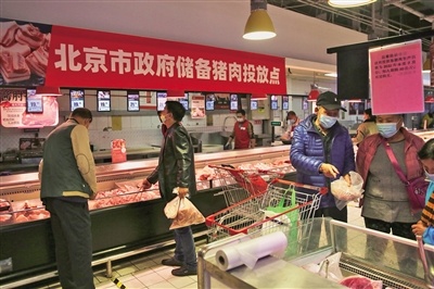 10月24日,物美超市大興黃村店,市民在“北京市政府儲備豬肉投放點”專柜選購商品。 新京報記者 鄭新洽 攝