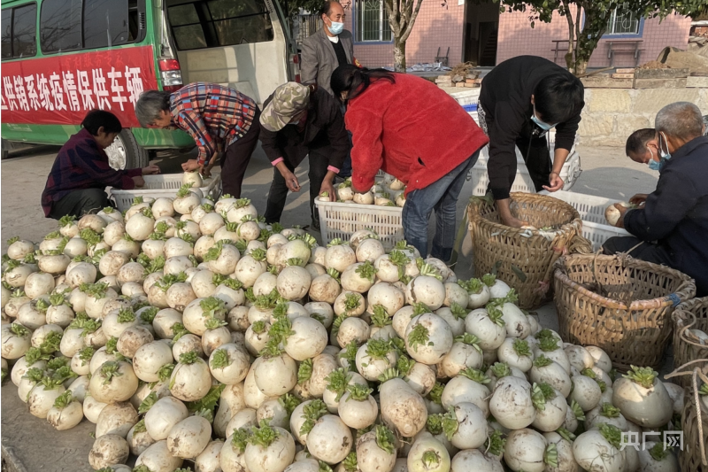 接下來(lái),一品供銷社通過(guò)與農(nóng)禾電商公司取得聯(lián)系,很快就為包括趙先華在內(nèi)的7戶村民近4000斤的蘿卜找到了銷售渠道。當(dāng)掛著供銷系統(tǒng)疫情保供橫幅的車(chē)輛出現(xiàn)在趙先華面前時(shí),他緊鎖的眉頭終于舒展開(kāi)來(lái),露出了微笑。