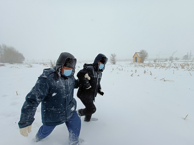 國網扎賚特旗供電公司配電運檢人員冒雪對設備巡視(馬曉飛 攝)