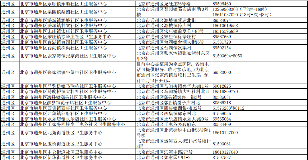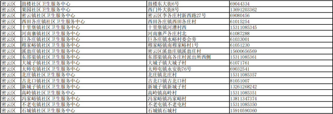 北京市接診發(fā)熱等11類癥狀患者社區(qū)衛(wèi)生服務(wù)中心名單