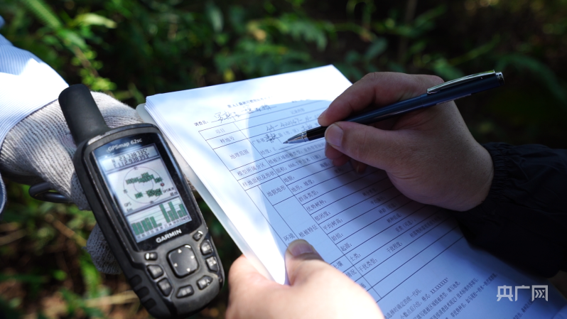工作人員在進(jìn)行調(diào)查登記(央廣網(wǎng)發(fā) 廣東省林業(yè)局 供圖)