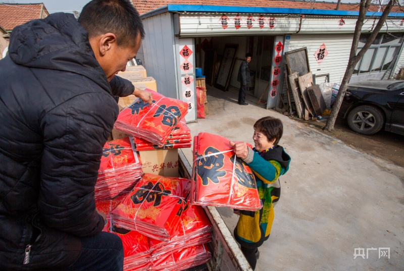 村民將春聯(lián)打包裝車(央廣網(wǎng)發(fā) 宋世榮攝)