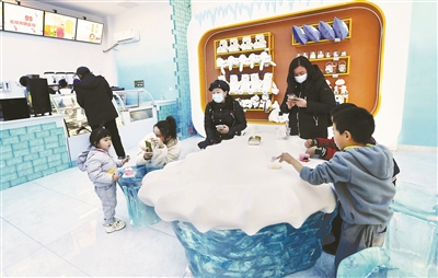 在觀摩體驗區(qū),游客可以觀看有趣的制冰過程。游客熱衷在拍照打卡區(qū)和白熊雕塑合影,留下一段美好的記憶。在周邊商品展示區(qū),各類周邊商品陳列于此,供游客朋友挑選采購。