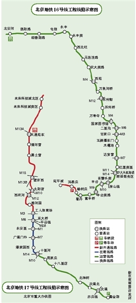 為17號(hào)線北段(未來(lái)科技城北區(qū)-工人體育場(chǎng))、16號(hào)線剩余段(榆樹莊-宛平城)