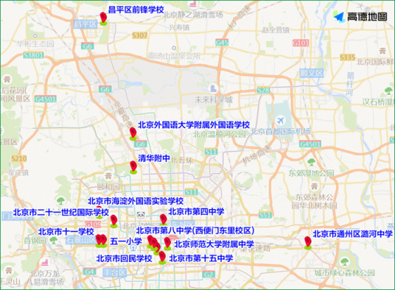 早間,中關(guān)村、廣渠門(mén)、什剎海、豐臺(tái)西南四環(huán)等學(xué)校較為集中的地區(qū)交通壓力突出。清華附中、北京四中、皇城根小學(xué)、十一學(xué)校、海淀外國(guó)語(yǔ)實(shí)驗(yàn)學(xué)校、師范大學(xué)第二附屬中學(xué)海淀學(xué)校、第十二中學(xué)科豐校區(qū)等校園周邊車流集中,校園門(mén)前道路容易出現(xiàn)行駛緩慢的情況。各中學(xué)周邊道路車流高峰將出現(xiàn)在7:00至7:30;小學(xué)周邊車流高峰普遍出現(xiàn)在7:30至8:00。