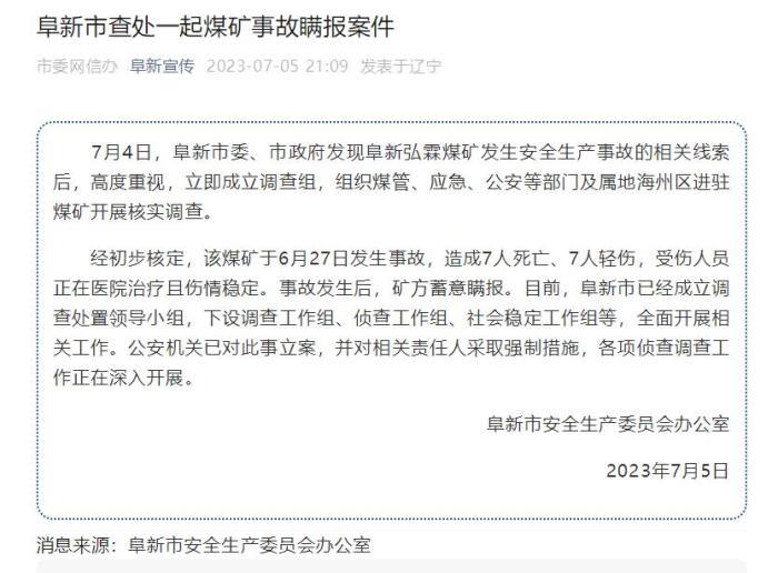 經(jīng)初步核定,該煤礦于6月27日發(fā)生事故,造成7人死亡、7人輕傷,受傷人員正在醫(yī)院治療且傷情穩(wěn)定。事故發(fā)生后,礦方蓄意瞞報(bào)。