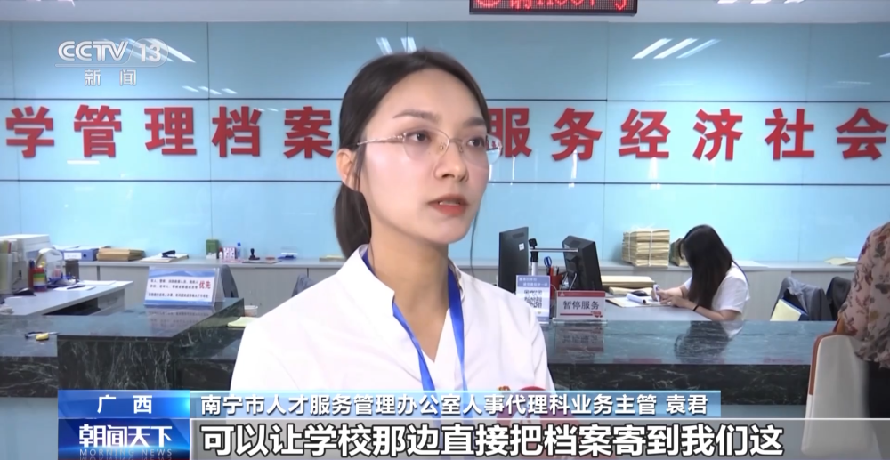 南寧市人才服務(wù)管理辦公室人事代理科業(yè)務(wù)主管 袁君:可以讓學(xué)校那邊直接把檔案寄到我們這,我們進(jìn)行一個免費的托管,不需要學(xué)生本人再提供任何的工作材料到現(xiàn)場或者是在網(wǎng)上再辦理任何檔案接收手續(xù)。