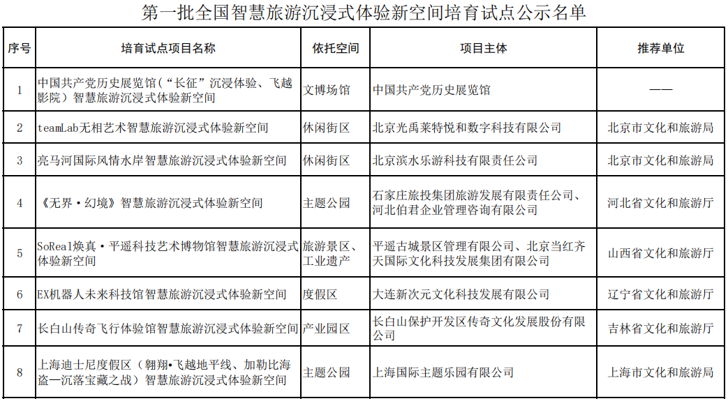 全國首批24個智慧旅游沉浸式體驗新空間培育試點公示