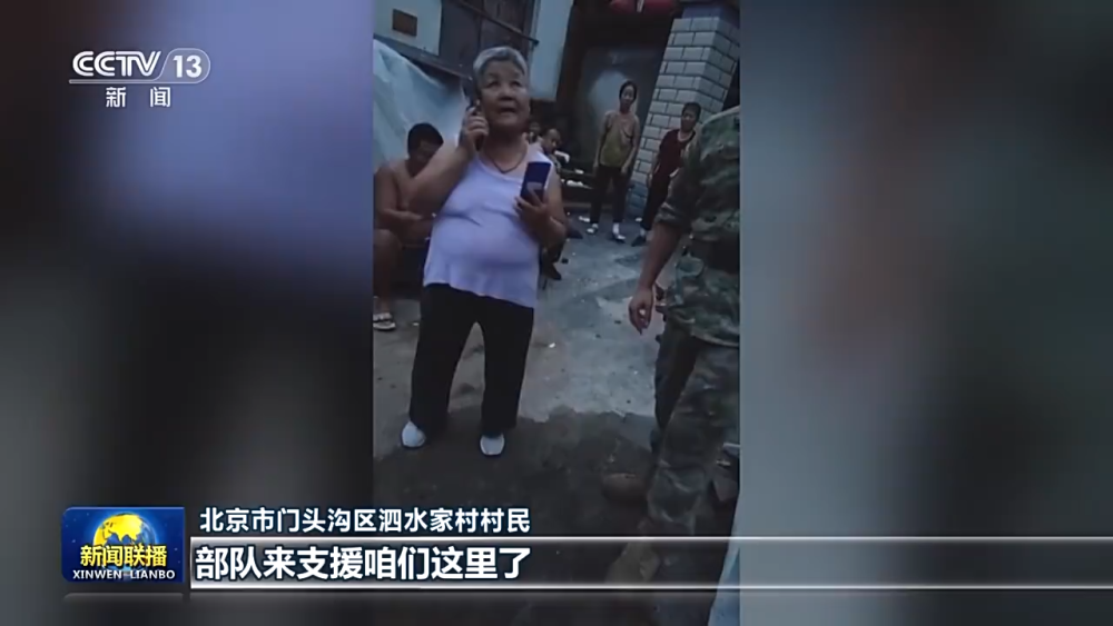 北京市門(mén)頭溝區(qū)泗水家村村民:部隊(duì)來(lái)支援咱們這里了。你別哭,你別哭,解放軍在這呢,你們就放心吧。謝謝解放軍們。