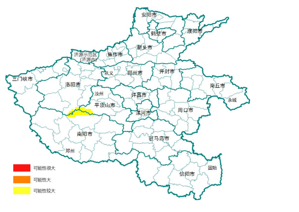縣(市)地質(zhì)災害氣象風險黃色預警區(qū)域包括洛陽、平頂山、南陽等3個省轄市,3個縣。具體為:洛陽嵩縣,平頂山魯山縣,南陽南召縣,這些地區(qū)發(fā)生地質(zhì)災害的可能性較大。