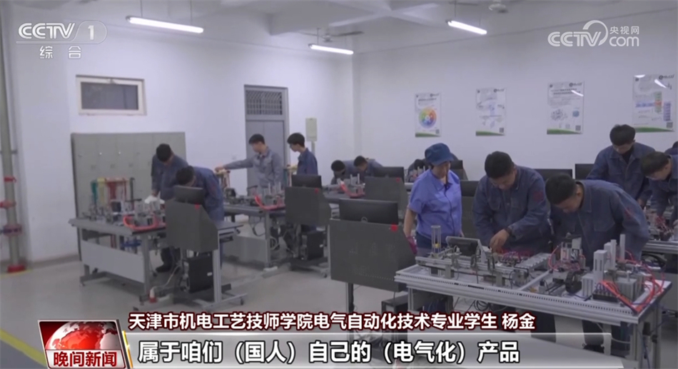 天津市機電工藝技師學(xué)院電氣自動化技術(shù)專業(yè)學(xué)生 楊金:讓每一顆螺絲、每一個部件都能發(fā)揮出它最大的作用,這就是我的需要和目標(biāo)了。(未來希望)自主去研發(fā)需要使用的機器,可以去創(chuàng)造(更多)屬于咱們(國人)自己的(電氣化)產(chǎn)品。