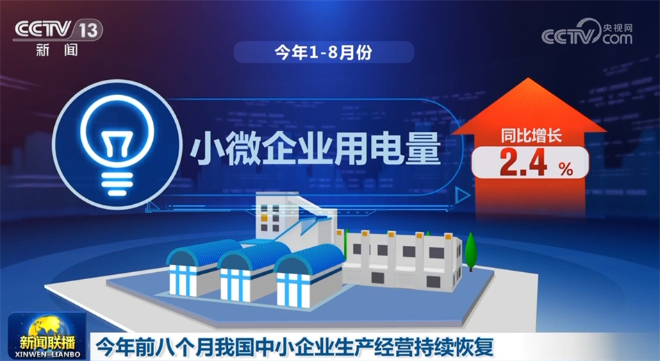 最新數(shù)據(jù)顯示,今年1—8月份,小微企業(yè)用電量同比增長2.4%。其中,“小巨人”企業(yè)、專精特新中小企業(yè)用電量同比分別增長12.7%、9.6%。隨著一系列穩(wěn)增長政策措施集中發(fā)力,8月份,中小企業(yè)信心指數(shù)達(dá)61.9%,采購指數(shù)50.6%,分別較7月份上升0.7個百分點(diǎn)、0.3個百分點(diǎn)。