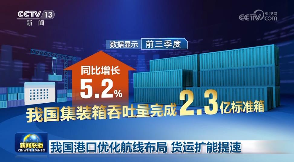 央視網(wǎng)消息(新聞聯(lián)播):今年以來(lái),我國(guó)港口緊跟市場(chǎng)需求,積極優(yōu)化航線(xiàn)布局,加大貨物運(yùn)輸?shù)亩嗍铰?lián)運(yùn),助力我國(guó)經(jīng)濟(jì)發(fā)展。