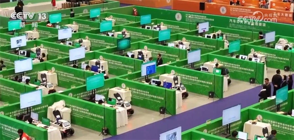 總臺(tái)央視記者 張叢婧:我身旁這一個(gè)個(gè)小隔間就是選手的比賽工位,可以看到有不同顏色,代表著四個(gè)賽項(xiàng),分別是工業(yè)互聯(lián)網(wǎng)安全、汽車芯片開發(fā)應(yīng)用、工業(yè)大數(shù)據(jù)算法、5G+虛擬現(xiàn)實(shí)開發(fā)應(yīng)用。除了工業(yè)大數(shù)據(jù)算法這一項(xiàng),其他三個(gè)賽項(xiàng)都是今年新設(shè)立的。
