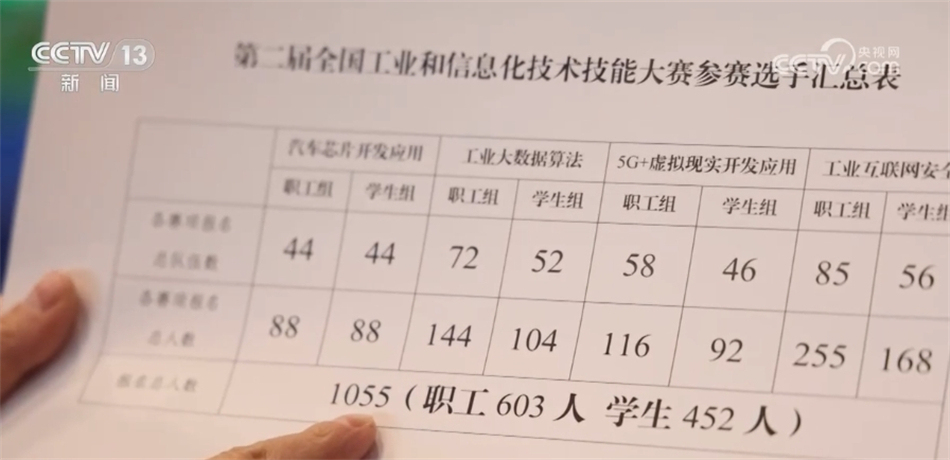 總臺(tái)央視記者 張叢婧:這是決賽的參賽表,可以看到,這次的選手有1000多名。我發(fā)現(xiàn),選手里將近一半都是學(xué)生,他們大部分來自職業(yè)院校。主辦方告訴我,和去年相比,今年學(xué)生的比例提高了30%多。