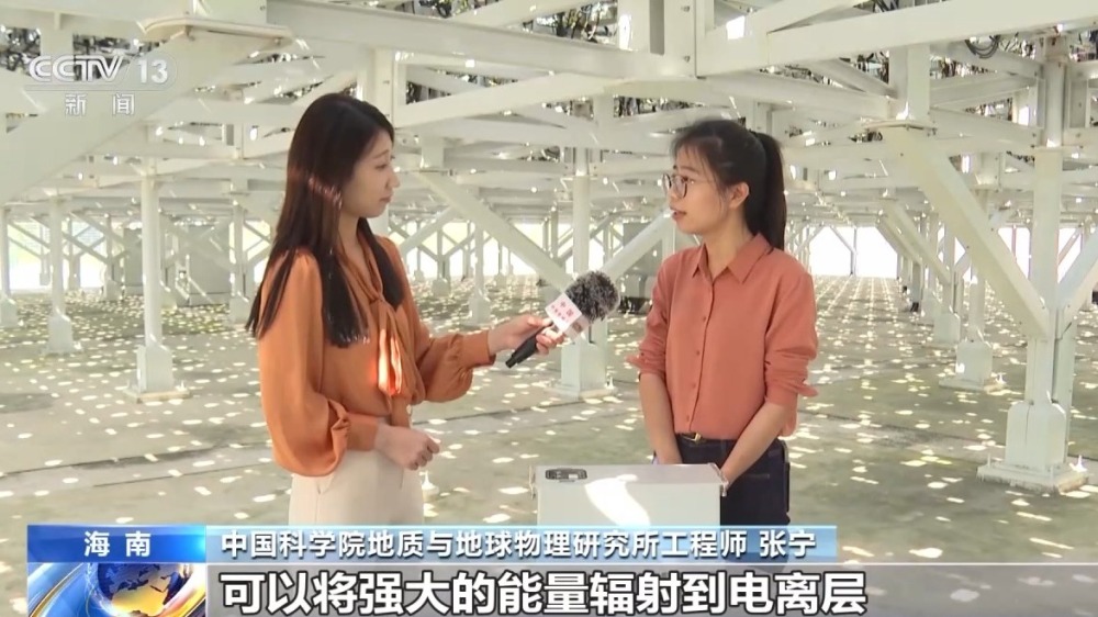 中國科學(xué)院地質(zhì)與地球物理研究所工程師 張寧:通過8320個組件可以將強(qiáng)大的能量輻射到電離層,然后電離層會散射微弱的回波信號。然后我們通過低噪聲放大和波形的編解碼,可以對微弱的散射信號進(jìn)行分析,得到電離層的參數(shù),將電離層中電子和離子的狀態(tài),像顯微鏡一樣放大給科學(xué)家。