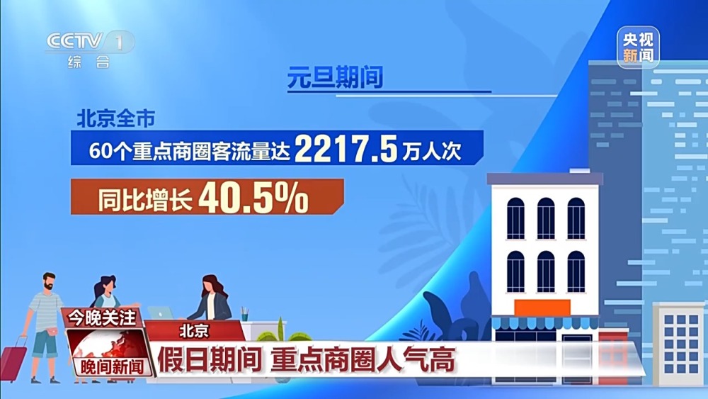 最新數(shù)據(jù)顯示,元旦期間,北京全市60個(gè)重點(diǎn)商圈客流量達(dá)2217.5萬人次,同比增長40.5%。上海全市35個(gè)重點(diǎn)商圈的線下客流總量達(dá)到1548萬人次,外來消費(fèi)發(fā)生消費(fèi)金額為65億元,次數(shù)高達(dá)705.4萬人次。