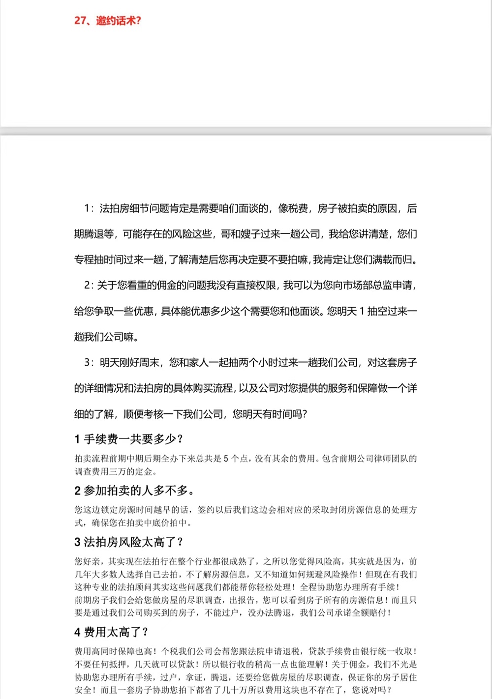 吳先生給記者提供了一份法拍房中介推銷話術
