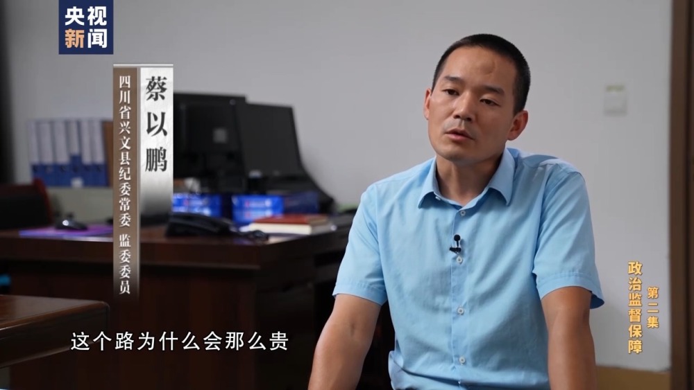 四川省興文縣紀委常委、監(jiān)委委員 蔡以鵬:村民提出一個觀點,這個路為什么會那么貴?因為大家都在農(nóng)村,都很清楚這個挖(修)路你到底需要多少錢。