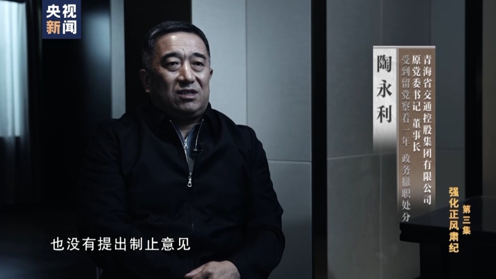 青海省交通控股集團有限公司原黨委書記、董事長 陶永利:自己也很清楚,這是不對的,也是違反紀律要求的,但是覺得人的情面大于了紀律要求,自己也就破防了,也沒有在那里提出反對意見,也沒有提出制止意見。