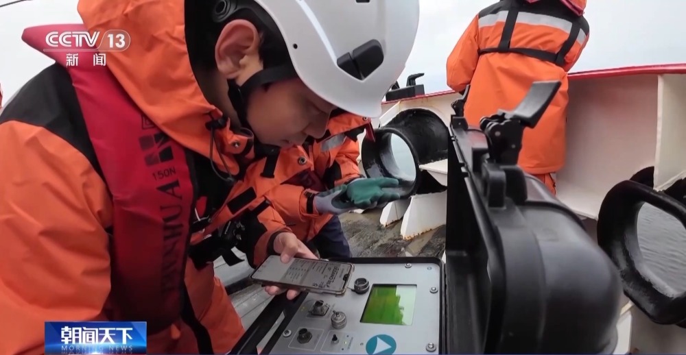 中國第40次南極考察隊(duì)隊(duì)員 王德麟:它是一個(gè)聲學(xué)的換能器,功能類似于一個(gè)陸地上的擴(kuò)音器或者是話筒,它發(fā)出一個(gè)聲學(xué)信號(hào),跟水下的釋放器進(jìn)行通訊,釋放器會(huì)回應(yīng)一個(gè)信號(hào),被它接收到之后,我們通過傳輸?shù)臅r(shí)間來估計(jì)距離釋放器有多遠(yuǎn)。