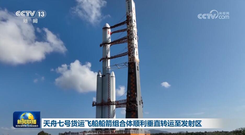 天舟七號(hào)貨運(yùn)飛船船箭組合體順利垂直轉(zhuǎn)運(yùn)至發(fā)射區(qū)