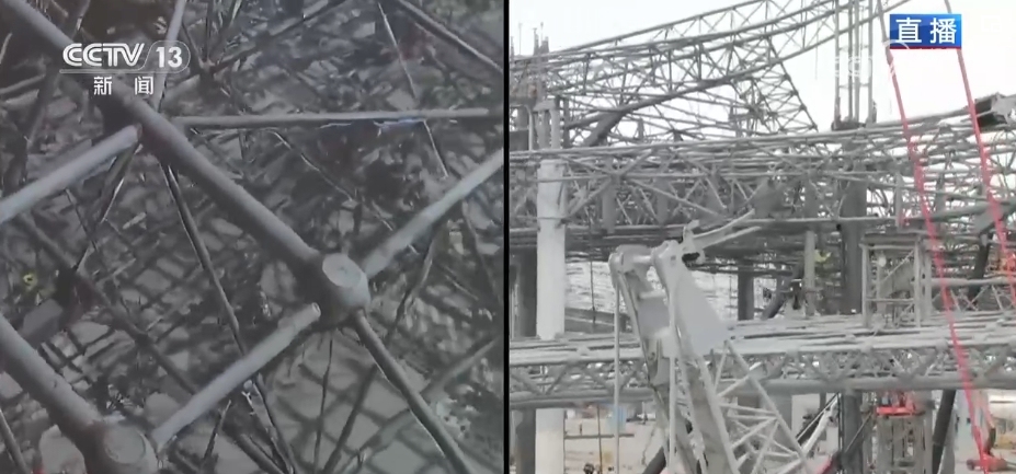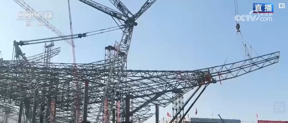 總臺(tái)記者 韓志濤:隨著最后一榀鋼梁順利吊裝到位,機(jī)場(chǎng)主航站樓鋼結(jié)構(gòu)合攏。航站樓的設(shè)計(jì)靈感來(lái)源于閩南傳統(tǒng)大厝,遠(yuǎn)看就像一只展翅飛翔的白鷺。白鷺身體部分就是主航站樓,像一個(gè)大屋蓋,總面積相當(dāng)于18個(gè)標(biāo)準(zhǔn)足球場(chǎng),總用鋼量達(dá)到1.1萬(wàn)噸,重量相當(dāng)于181節(jié)火車車廂。想把這些鋼梁安全架上去,誤差要控制在毫米級(jí),可以說(shuō)難度非常大,究竟是怎么完成的?建設(shè)者們想了一個(gè)巧妙的辦法,像拼搭積木一樣把屋蓋分為三個(gè)部分,先在樓面的原位進(jìn)行拼接,然后是分區(qū)域用液壓設(shè)備同步提升,最后在空中轉(zhuǎn)體調(diào)整角度。施工人員介紹,作業(yè)中最大單個(gè)提升區(qū)面積達(dá)3萬(wàn)多平方米,提升重量有2600多噸,由數(shù)萬(wàn)個(gè)構(gòu)件拼接而成。完成后同步啟動(dòng)60多個(gè)液壓提升點(diǎn)向上整體提升1米,懸空后通過(guò)空中旋轉(zhuǎn)7度,調(diào)節(jié)到設(shè)計(jì)姿態(tài),最后提升到31米后精準(zhǔn)安裝。