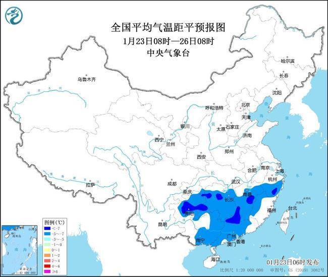 中央氣象臺1月23日06時繼續(xù)發(fā)布低溫藍色預(yù)警:預(yù)計,1月23日至25日,貴州、湖南、江西、浙江中南部、福建西部、廣東、廣西中東部等地最低氣溫或平均氣溫較歷史同期偏低5℃以上,其中,貴州中東部、湖南西北部、江西中南部、浙江南部、廣東西北部等地的部分地區(qū)偏低7℃以上,最低氣溫0℃線將位于廣西北部、廣東北部一帶 。