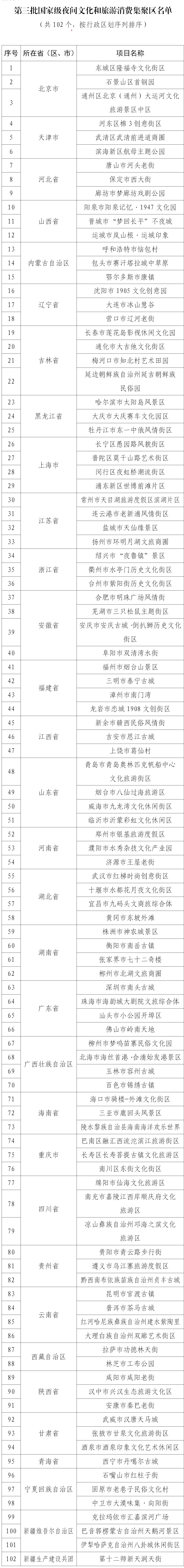 第三批國家級(jí)夜間文化和旅游消費(fèi)集聚區(qū)名單: