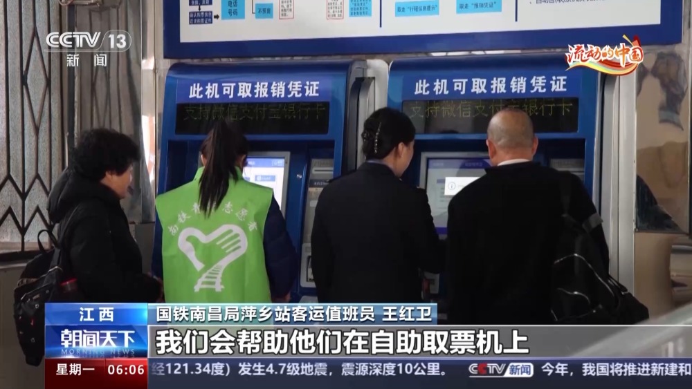 國鐵南昌局萍鄉(xiāng)站客運(yùn)值班員 王紅衛(wèi):最近,我們也遇到很多老年旅客,我們會幫助他們在自助取票機(jī)上打印一張行程信息提示單,行程信息提示單在所乘車次下方會顯示詳細(xì)的檢票口和座位號,方便旅客乘車。