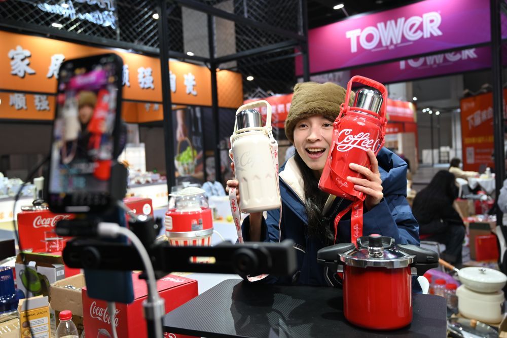2023年12月21日,浙江省永康市一家保溫杯企業(yè)電商部門(mén)的工作人員通過(guò)直播推介保溫杯產(chǎn)品。新華社記者 韓傳號(hào) 攝