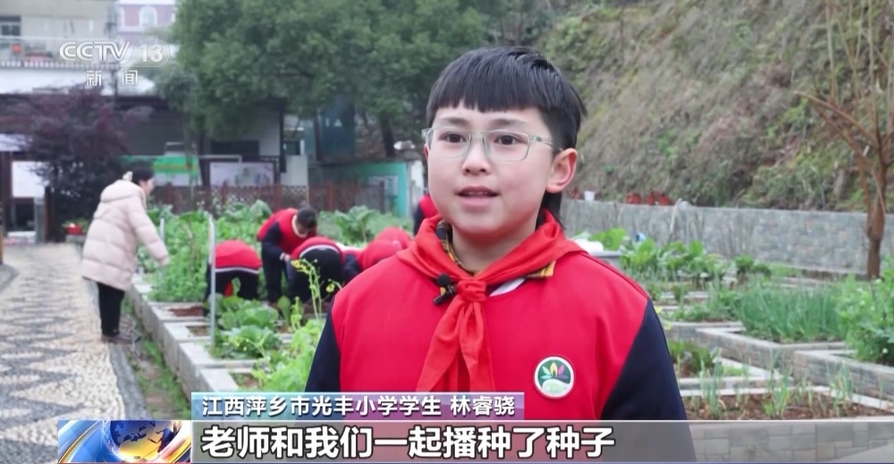 在江西萍鄉(xiāng),光豐小學(xué)的老師將新學(xué)期的第一課放到了室外,孩子們來到菜園實(shí)地觀察各種農(nóng)作物,將手中的蔬菜種子播撒在土地里,親身體驗(yàn)勞動(dòng)的過程。