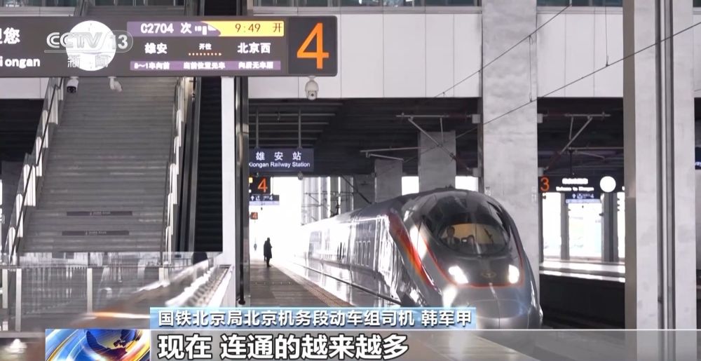 國鐵北京局北京機(jī)務(wù)段動車組司機(jī) 韓軍甲:剛開車到雄安的時候,這里只是一座車站?,F(xiàn)在,連通的越來越多,像去年年底天津方向過來的津興高鐵,和現(xiàn)在正在建設(shè)當(dāng)中的南向的雄商、西向的雄忻高鐵,這里將是一座新的樞紐,想一想非常開心,我想多開幾年高鐵。