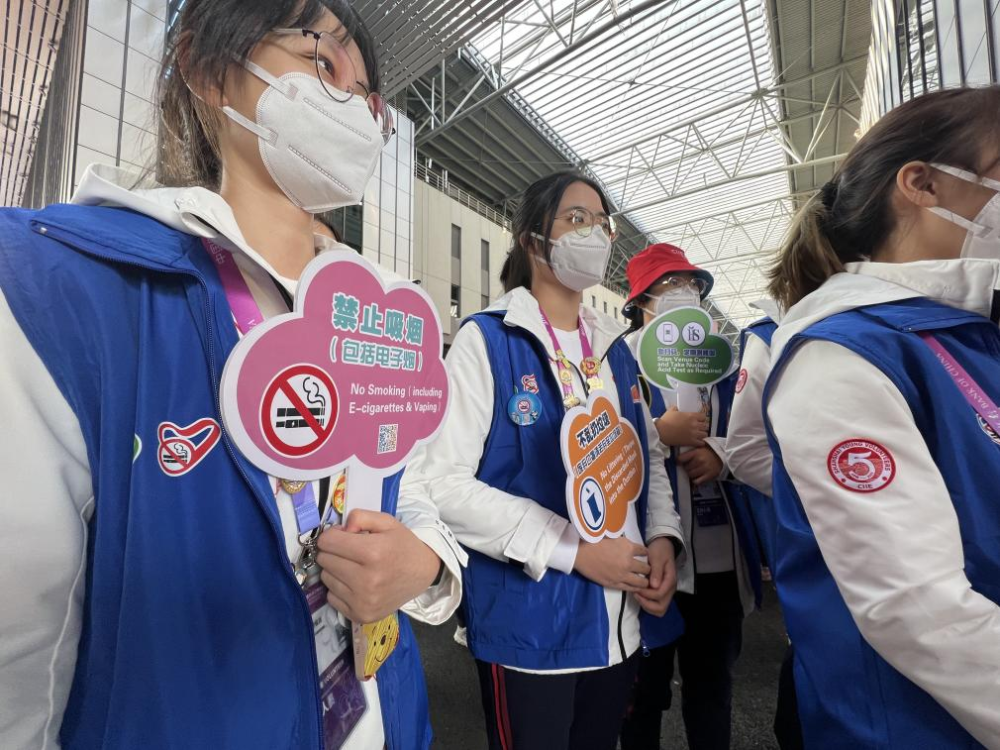 第五屆中國國際進口博覽會上的控煙志愿者隊伍。新華每日電訊記者 袁全 攝