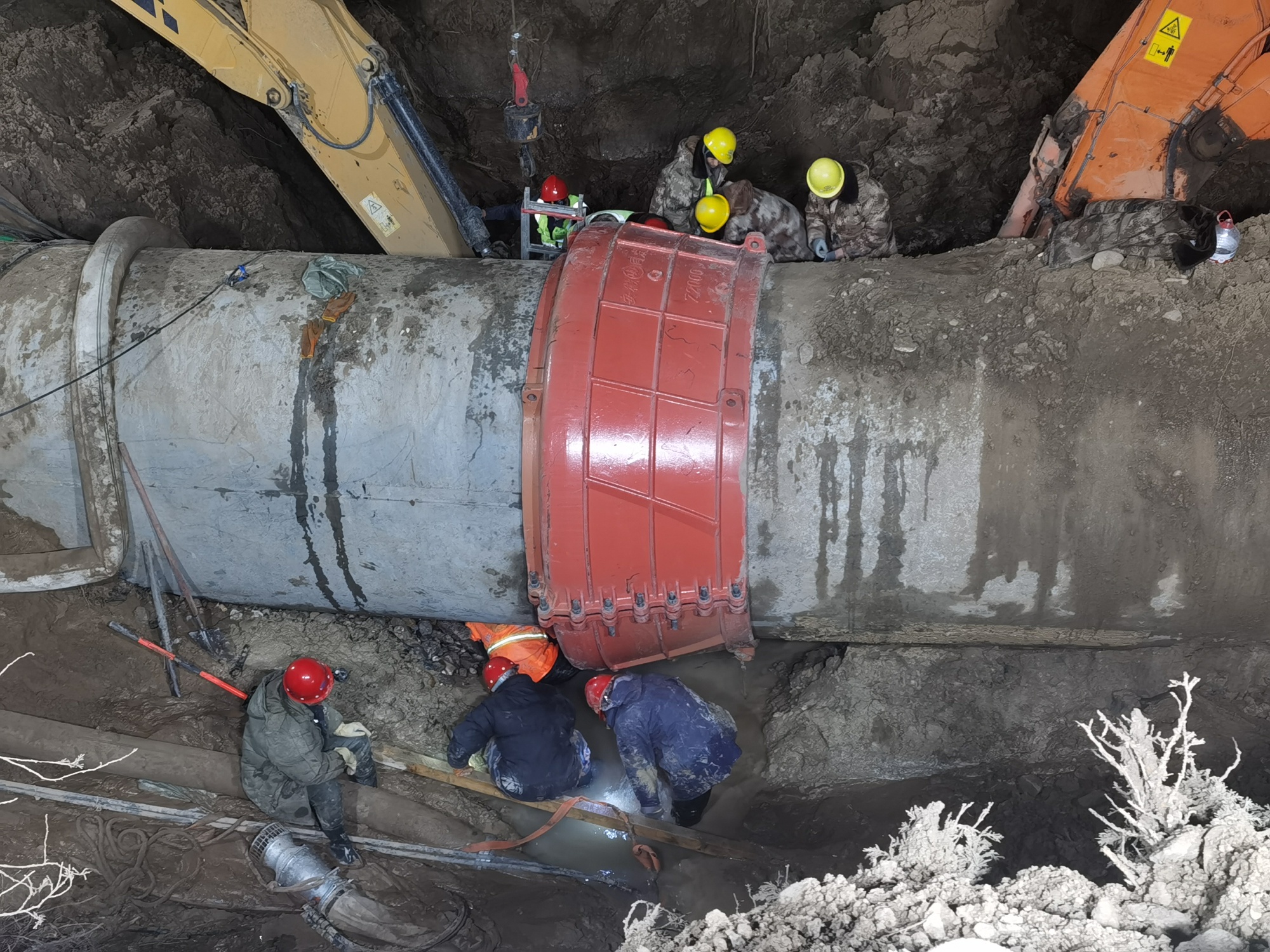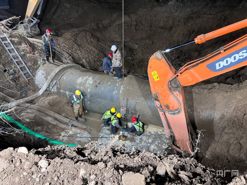 張文偉說(shuō):“因?yàn)檫@個(gè)管道是個(gè)兩米直徑的供水管線,是個(gè)主管線,它破裂以后水量特別大。管線是在耕地上,維修車輛是進(jìn)不去的。維修首先得修筑施工通道,所有車輛人員靠近不了,然后關(guān)閘停水,走施工通道過(guò)去以后,進(jìn)行原有管道抽排,管道里都是滿水,必須把水排干凈才能搶修,才能發(fā)現(xiàn)它是哪兒壞了,我們采取哪種方式來(lái)進(jìn)行搶修。搶修方案有很多種,我們也提前都有預(yù)案。所以抽水時(shí)間很長(zhǎng),上游就有7萬(wàn)多立方的水,抽排就是一個(gè)很大的難點(diǎn)?!?/p>