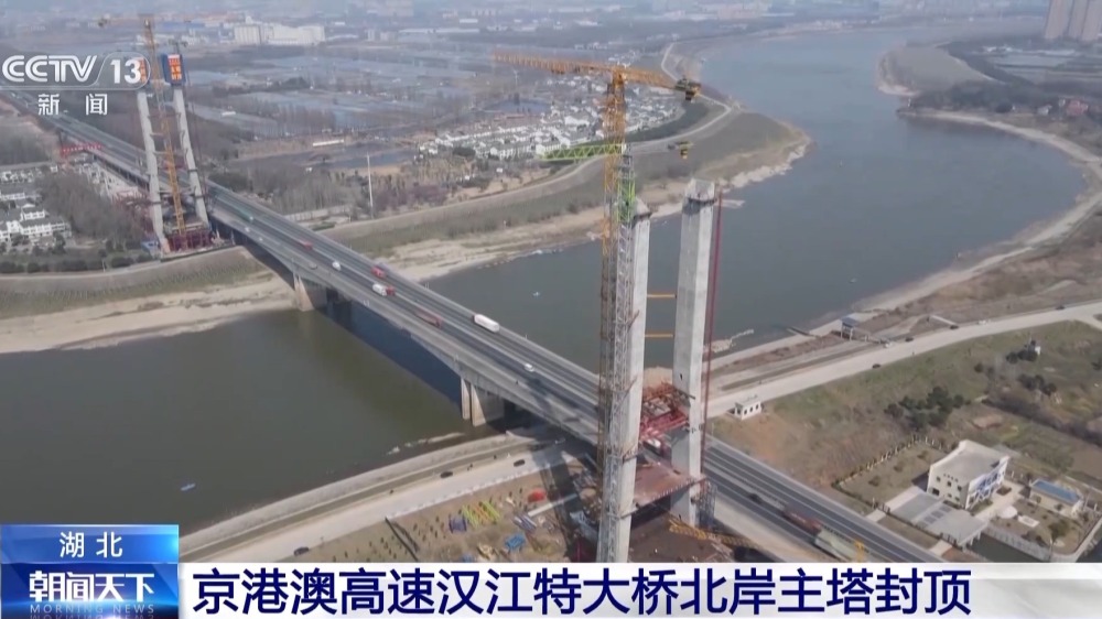 進度條更新!京港澳高速漢江特大橋北岸主塔封頂