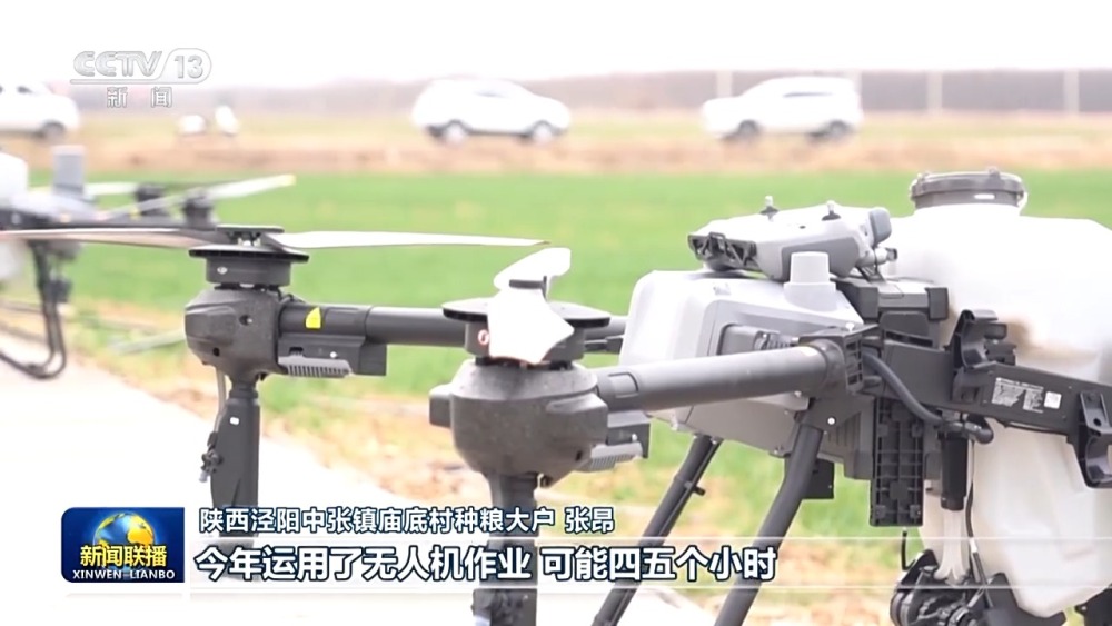 陜西涇陽(yáng)中張鎮(zhèn)廟底村種糧大戶(hù) 張昂:往年我們用的人工噴灑,作業(yè)時(shí)間長(zhǎng),而且成本也比較高,今年運(yùn)用了無(wú)人機(jī)作業(yè),可能四五個(gè)小時(shí),把我這兩千畝麥田的作業(yè)就基本完成了,而且還省錢(qián)。