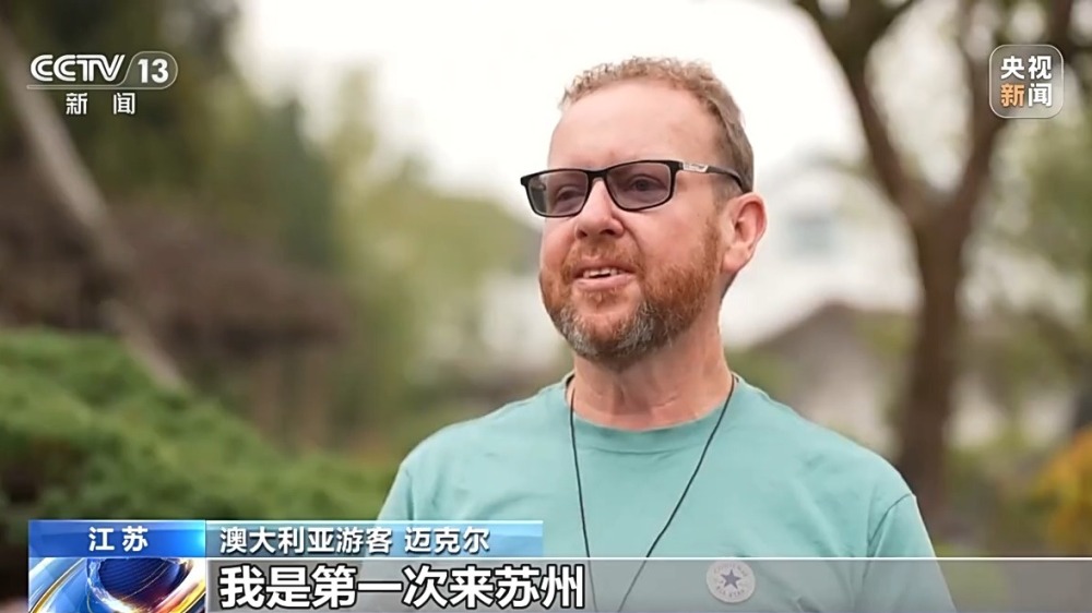 澳大利亞游客 邁克爾:我是第一次來蘇州,非常棒,風景秀麗,有著很深的歷史底蘊,人們也非常友好。