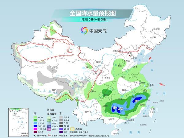 后天,新疆北疆高海拔地區(qū)和南疆西部山區(qū)、西藏北部、東部和西南部、青海南部、川西高原北部等地部分地區(qū)有小到中雪或雨夾雪。四川東部、重慶中部、貴州東部、浙江中南部、江西大部、湖南中南部、廣西北部、廣東北部等地部分地區(qū)有中到大雨,其中,湖南南部、江西中北部、福建西北部、廣西東北部等地部分地區(qū)有暴雨,局地大暴雨(100~110毫米)。