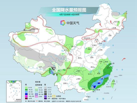 今天,江南南部和華南北部部分地區(qū)仍有大到暴雨,局地大暴雨,明后天降雨明顯減少、減弱。同時(shí),未來(lái)三天,青藏高原中東部有持續(xù)性雨雪天氣,其中西藏東部、青海東部和南部、川西高原等地有中到大雪、局地暴雪,西藏東部局地有大暴雪。