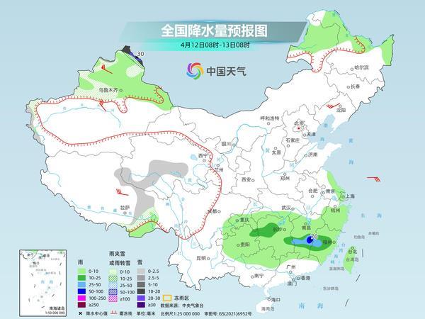 后天,新疆北疆北部和沿天山地區(qū)、西藏東部、青海南部等地部分地區(qū)有小到中雪或雨夾雪,其中,新疆北疆北部的部分地區(qū)有大到暴雪,局地大暴雪(20~30毫米)。貴州西北部、湖南中部、江西中部、福建中部等地部分地區(qū)有中到大雨,其中,江西東部的部分地區(qū)有暴雨。