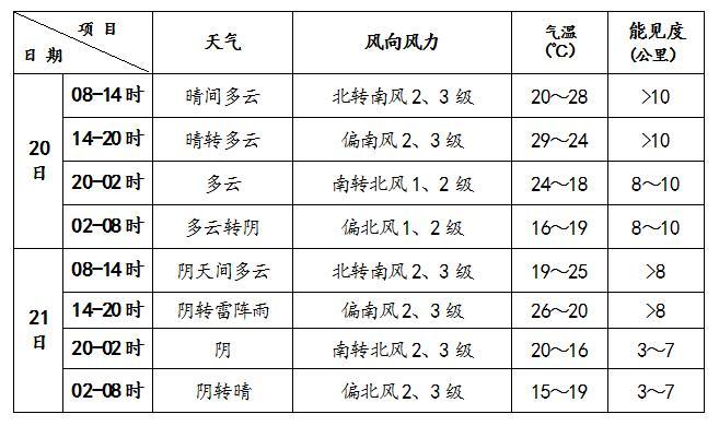 21日傍晚可能出現(xiàn)雷陣雨天氣,雨量不大,請關(guān)注最新天氣預報;大部分時間體感舒適,但晝夜溫差較大,早晨體感偏涼,午后偏熱,請根據(jù)氣溫變化及時調(diào)整著裝,以防感冒。